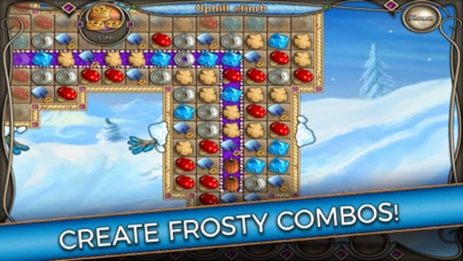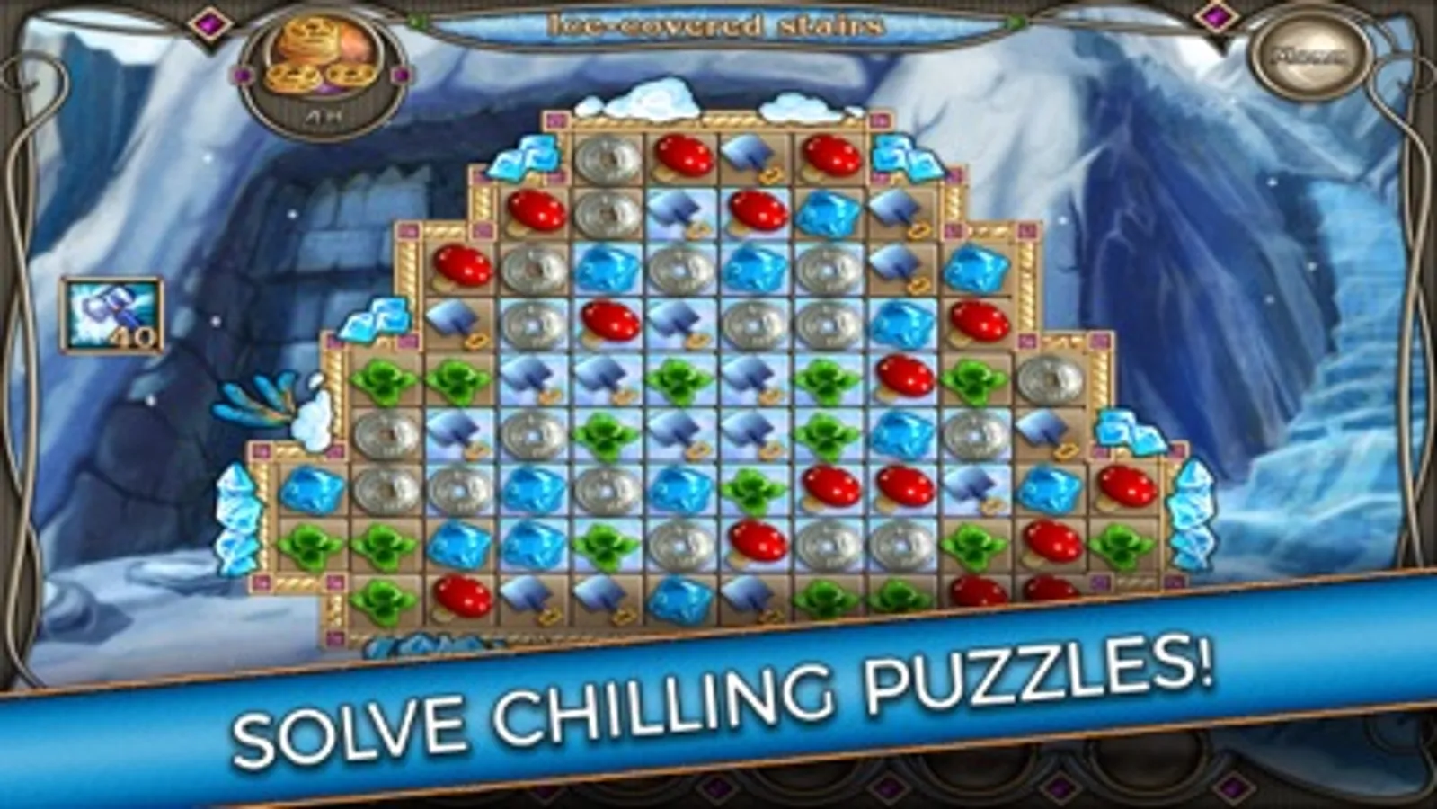 Face off against the dreaded evil spirits that haunt a local mountain to save your family in this exciting match 3 game! Journey through the snowy landscape and explore the labyrinth of a dark cave to unravel the mystery of the infamous Ghost King! Collect gold and precious stones to buy equipment needed to break the ice! Play a variety of puzzles in different scenes as you work to rescue your relatives!