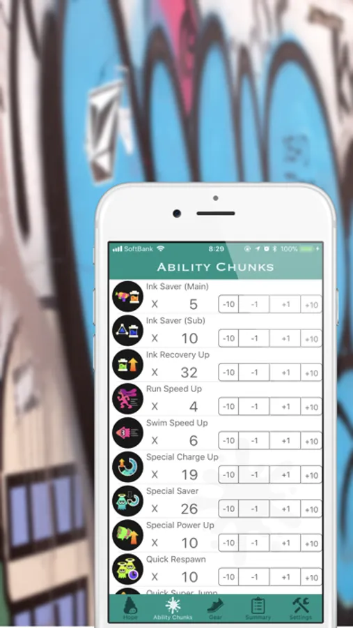From the "Gear" registered on the [Gear] screen and the number of "Ability Chunks" registered set on the [Ability Chunks] screen,