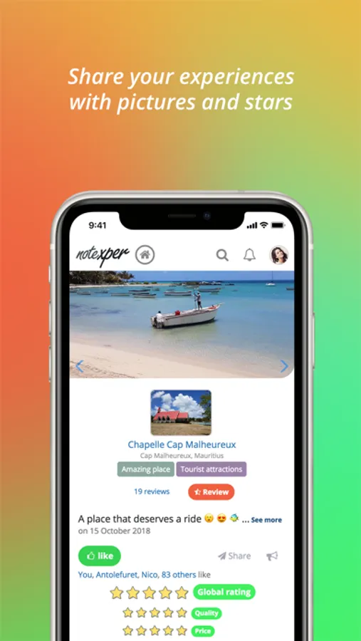 Share any experiences with your own words, pics or videos, and tell your followers precisely where to live these experiences one click away.