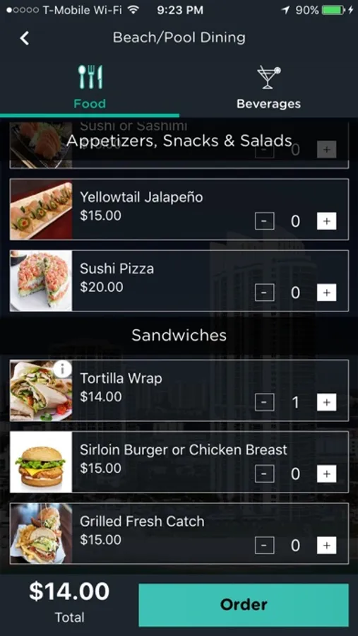 - Place beach/pool and in-room dining orders