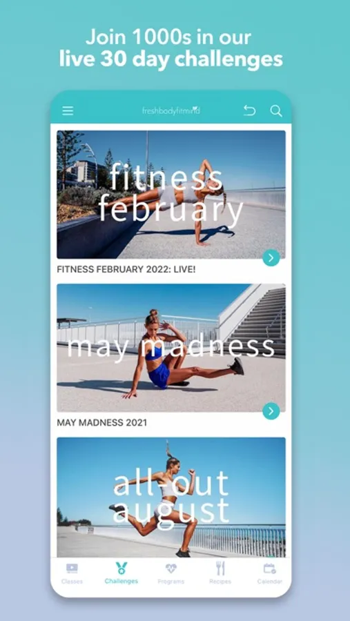 Experience the most popular feature of freshbodyfitmind… live 30-day challenges with our community! 30 classes in 30 days, do you have what it takes to get all the way through?