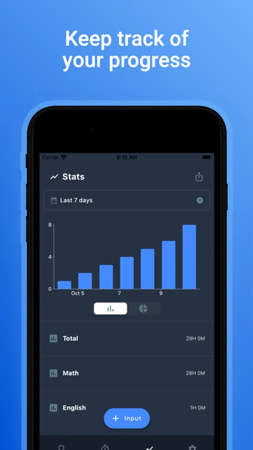 - Bar graphs that show the time you have spent studying with the app for the last 7 days/14 days(can be extended further with premium).