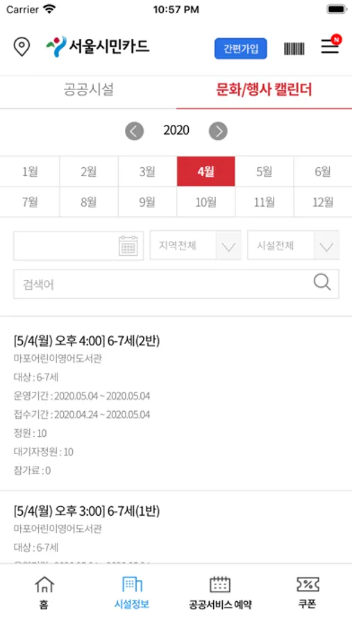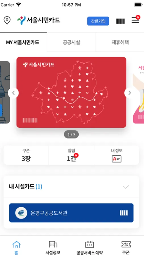 - 모바일 서울시민카드로 여러 시설의 회원으로 인증 받을 수 있습니다.