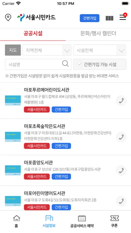 - 서울시민카드의 추천 시설 정보를 한눈에 확인할 수 있습니다.