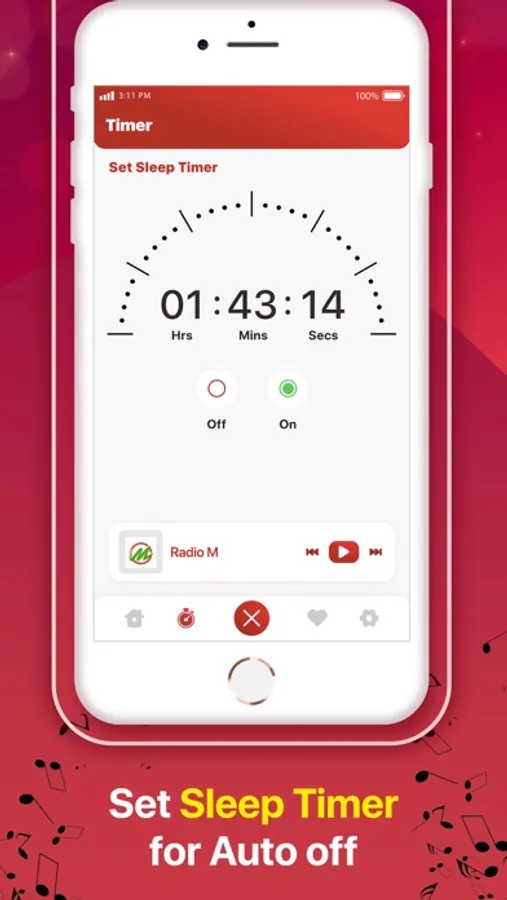 - Provides sleep timer option to turn off the radio playing at the given time.