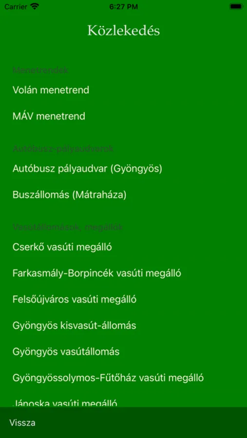 Ha az Internet elérhető, az alkalmazásból közvetlenül lehet használni az időjárási adatokat és a menetrendeket.