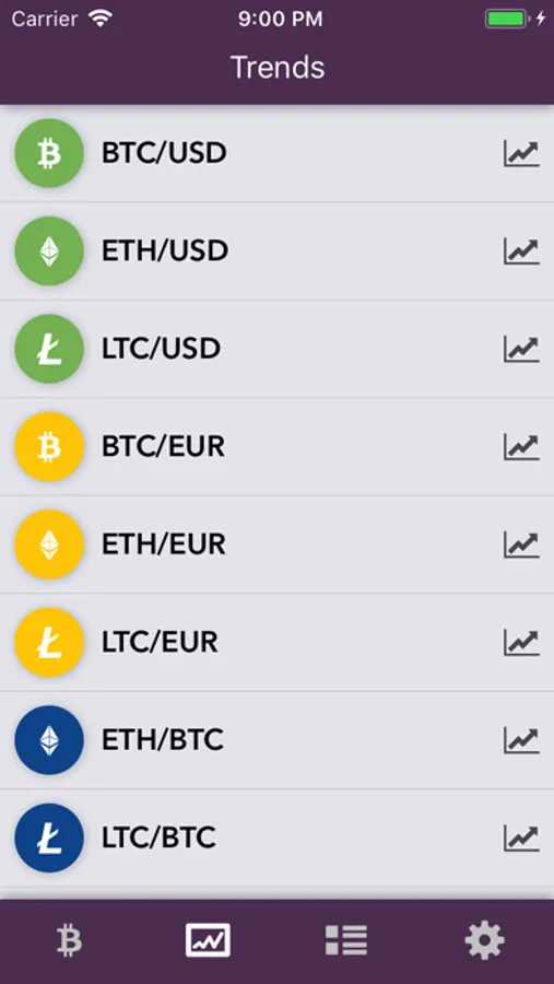 CryptoCoins provide up to date, real-time quotations for 3 major crypto-currencies: Bitcoin, Ether and LightCoin. You can get real-time quotations either in USD or in EURO.