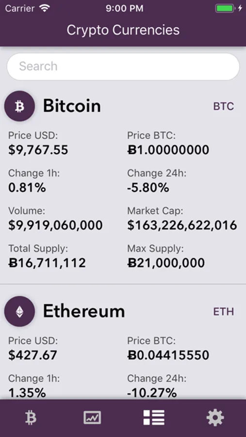You can browse up-to-date information about all the crypto-currencies with search facility.