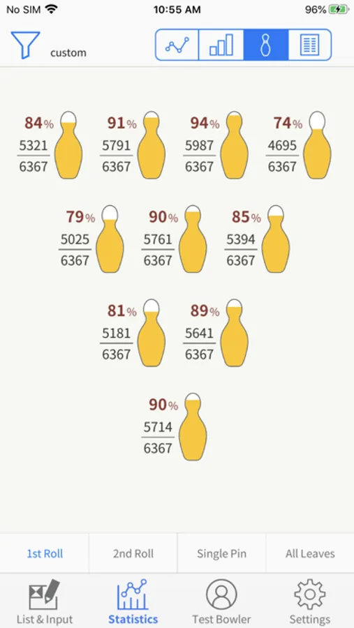- Percentage for each pins' down states, statistics of remaining pin patterns