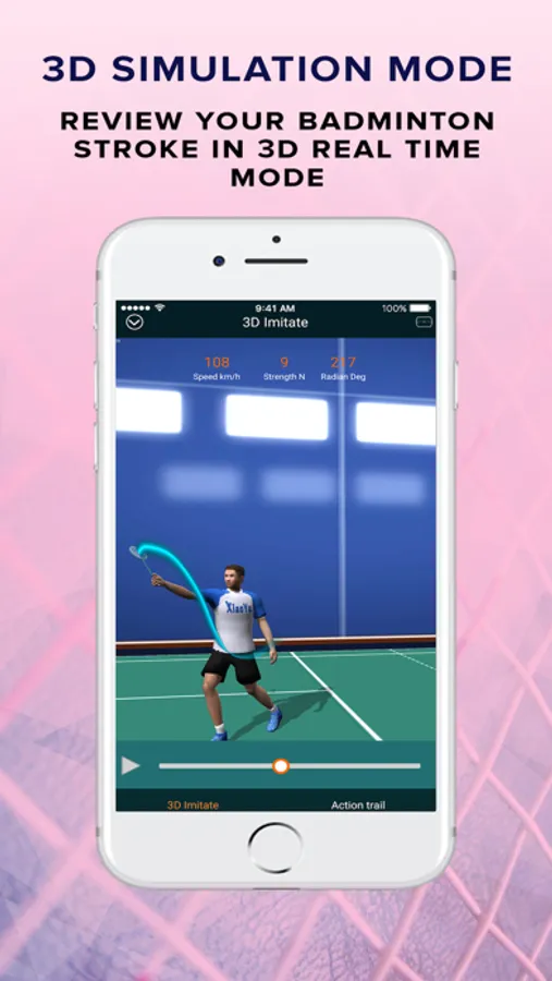 With the Speed power and Degree of Rotation tracked and displayed in real time it is a real revolution which helps you analyze and track each shot played to help you be one step ahead always. You can review your badminton stroke under real time mode via the latest 3D animation replayed immediately after each hit.