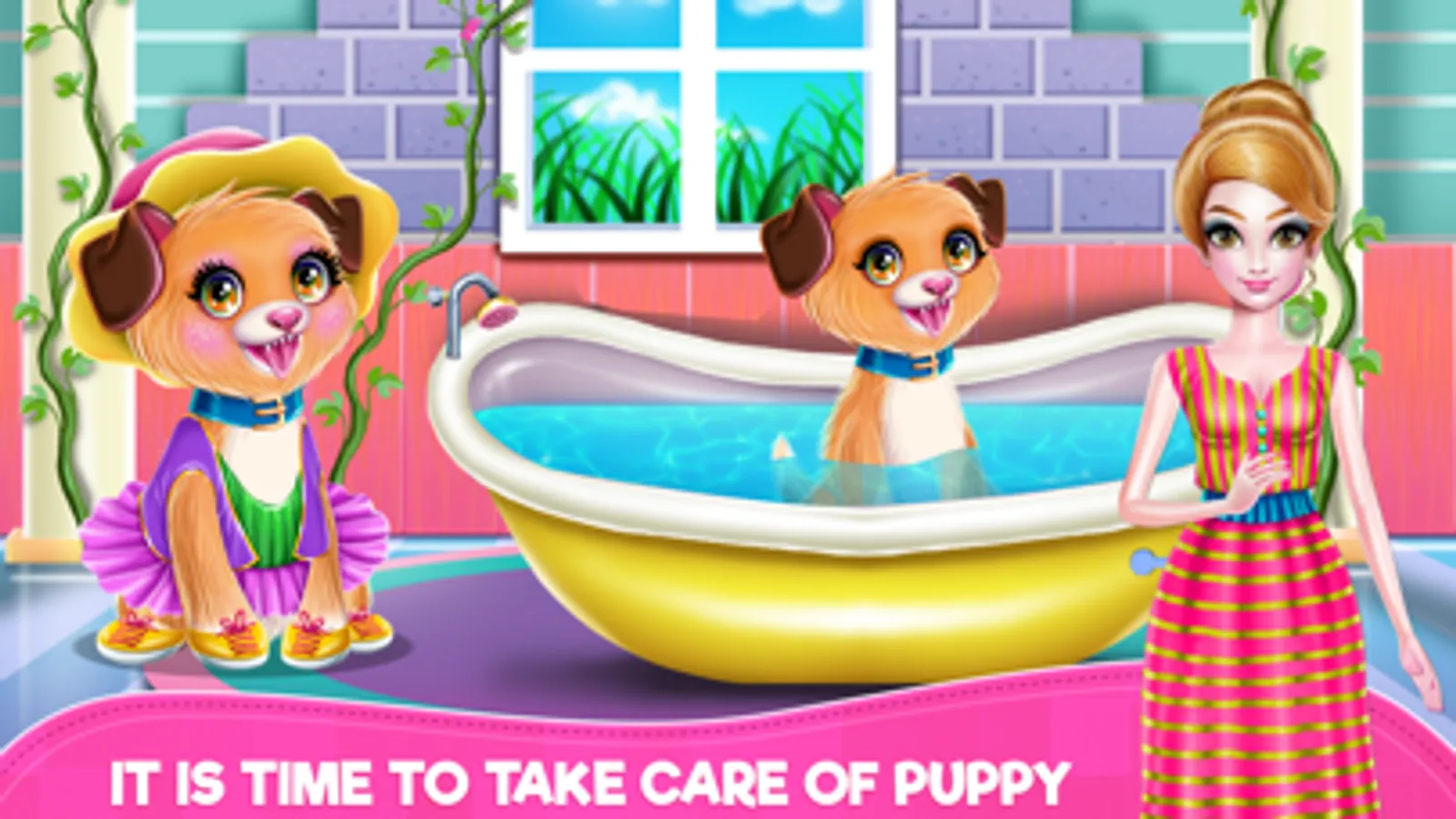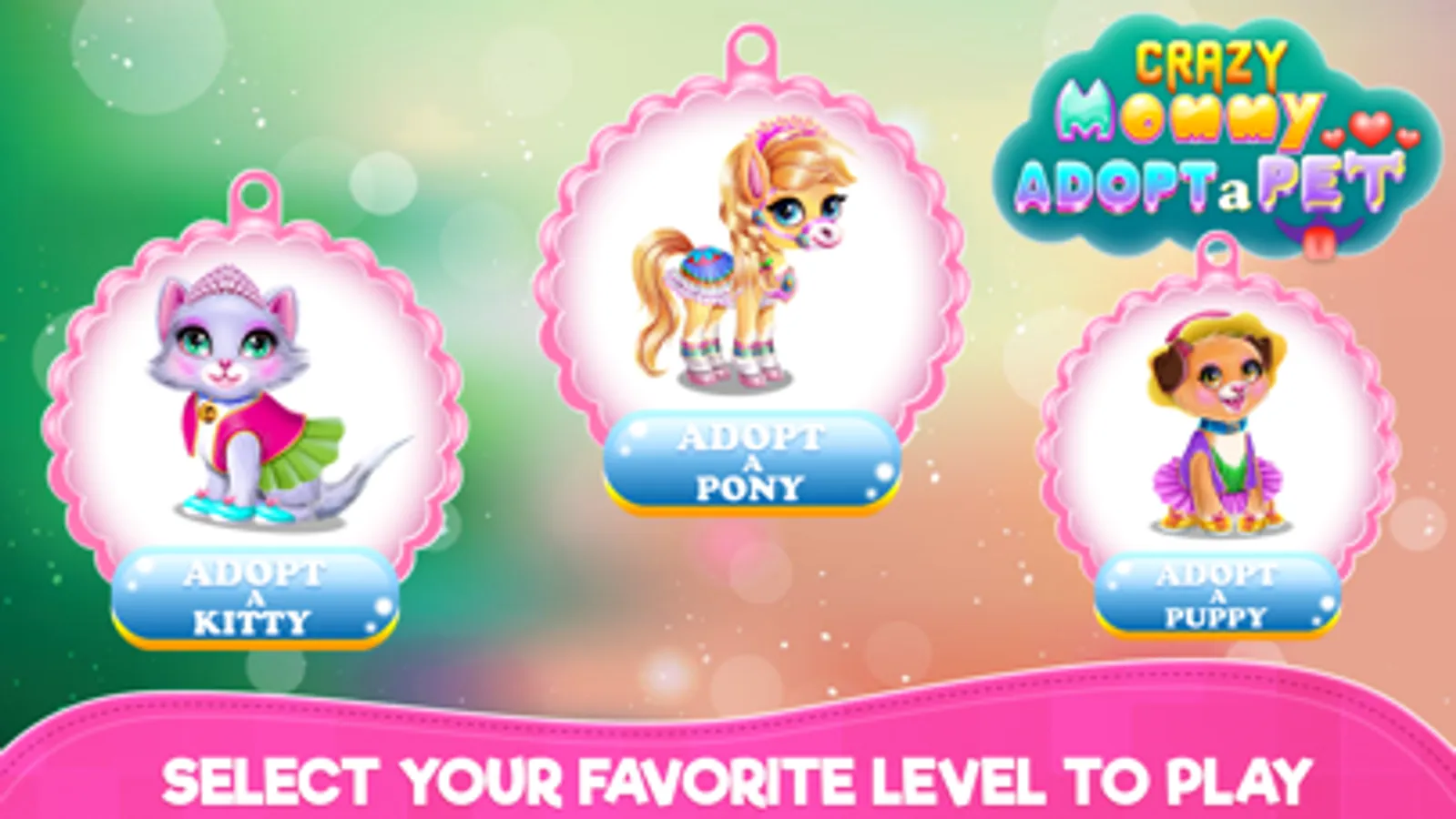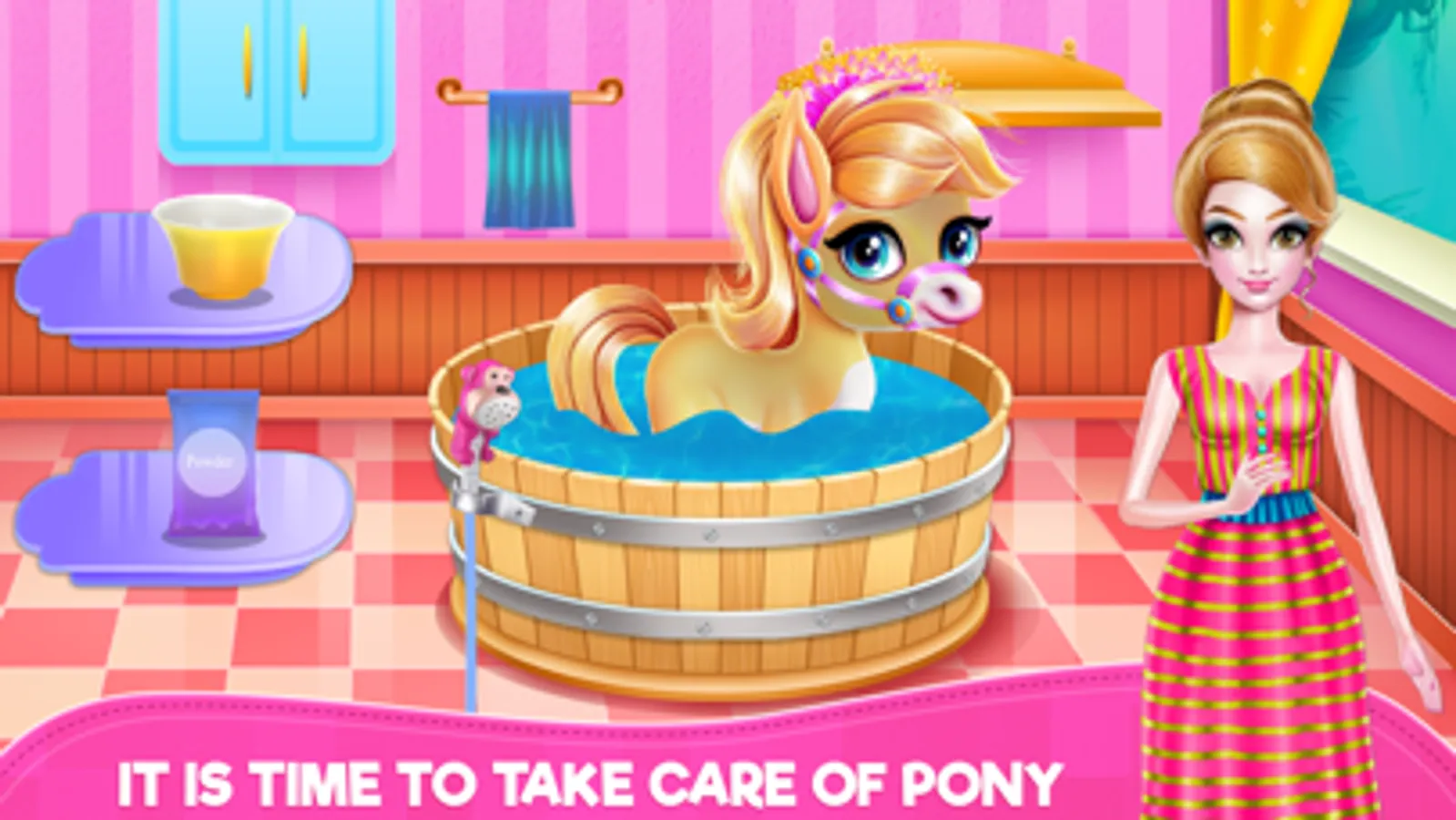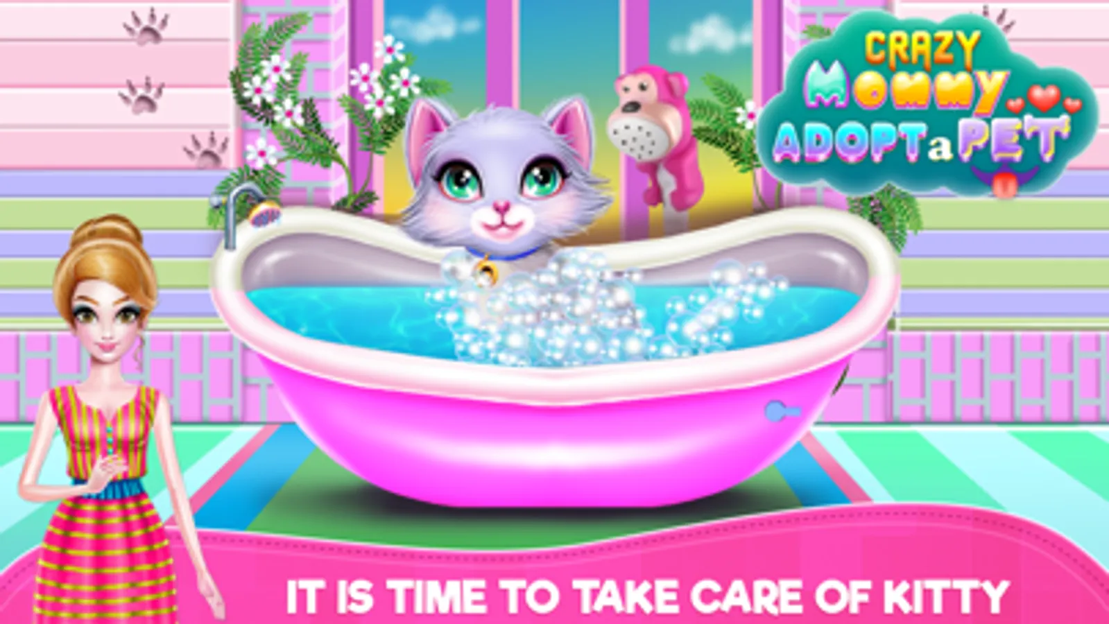 Oh no! There are so many adorable animals in this game that you couldn't resist the temptation to not play it. For sure is a fun idea, but there are some responsibilities that comes along with all these. This animal lover mom got the courage to own and care three different pets and because of that she is going crazy and will need your help to face the challenge. As you can see there is a kitty cat, a fluffy dog and a sweet pony that will require serious nursing skills, but in order to help them you have to take each one aside and offer a proper care according to their needs and asked environment. You will be guided along the way and each task will measure your devotion for these animals because now they will be yours. The cat will be first and you will have to cut her excess of nails then when she is ready put her right in the bath tube to get a cleaning and relaxing bubble wash. Use the soap and rub her skin in order to get her all covered by bubbles, then make sure you wash the fur. Dry her and use some beauty tricks to spoil her a little bit. You have the possibility to makeup the kitty and right after you will be adding the clothes with that sparkling tiara. If you are now playing with the pony you will see some similarities in the procedure, but you will be adding a face mask and even more makeup. The mascara and the braided hair will make a nice match with the pony's outfit. The dog turn has come and he will be pampered with a treatment that will whiten his teeth, then you will be taking a bath and if you follow the instructions there is no way you couldn't finish the last animal. Have fun and try to see how a mom that adopted three animals has her normal day and how you should behave with each one of them.