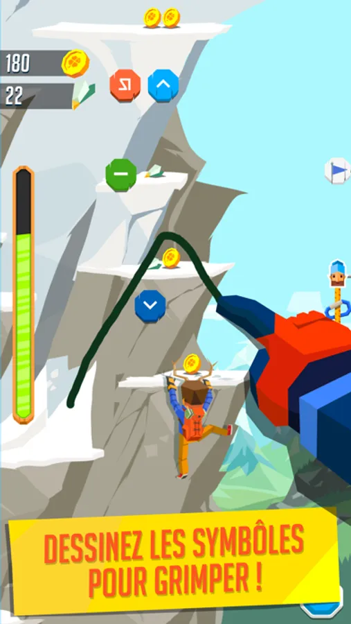 - Reproduisez les symboles dessinés sur l’écran pour escalader la montagne et atteindre les sommets