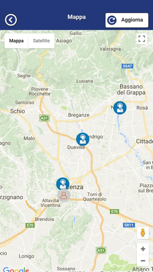 In ogni momento della giornata ogni singolo addetto visualizza gli interventi di sua competenza e viene informato in tempo reale su eventuali impegni aggiunti o modificati. Per ciascuna assistenza dispone di tutte le informazioni necessarie ad eseguire efficacemente l'intervento (luogo di esecuzione con visualizzazione mappa, tipologia di intervento, referente aziendale del cliente, eventuali annotazioni del responsabile tecnico, priorità ecc.).