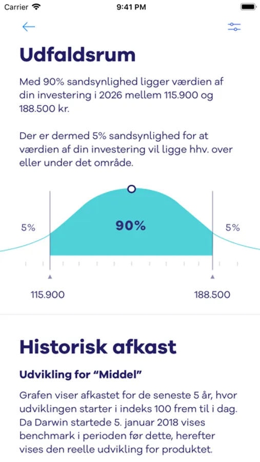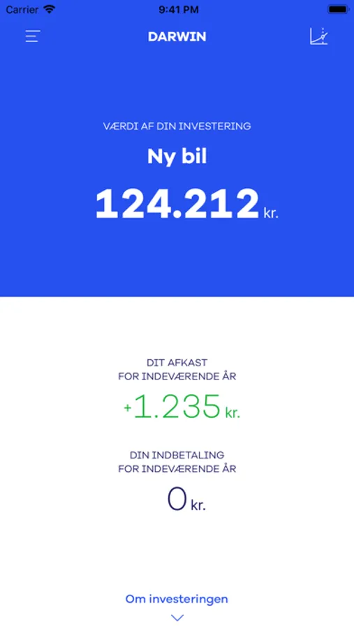 Darwin er en investeringsservice udviklet af BankInvest for en række danske pengeinstitutter og som tilbydes pengeinstitutternes kunder. Darwin gør det nemt for dig at investere dine penge, og du kan tilpasse din investering så den passer til din økonomi og tidshorisont. Darwin er et alternativ til at have dine penge stående på en opsparingskonto i banken. Du kan altid prøve appen, men du skal være kunde i et af de tilknyttede pengeinstitutter for at investere.