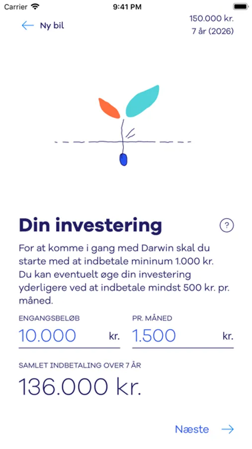 Investerer du til fremtidige muligheder? Eller har du et konkret mål, som din investering skal gå til? Darwin kan hjælpe dig med at få en idé om, hvor mange penge du skal investere, og hvor meget tid du skal bruge - men det er altid din beslutning, hvordan du investerer. BankInvests investeringsspecialister sørger løbende for, at investeringsbeviserne i Darwin følger de aftalte rammer, så du kan bruge tiden på det, der er vigtigt for dig. Du kan løbende følge udviklingen i din investering samt foretage ændringer alt efter din økonomiske situation.