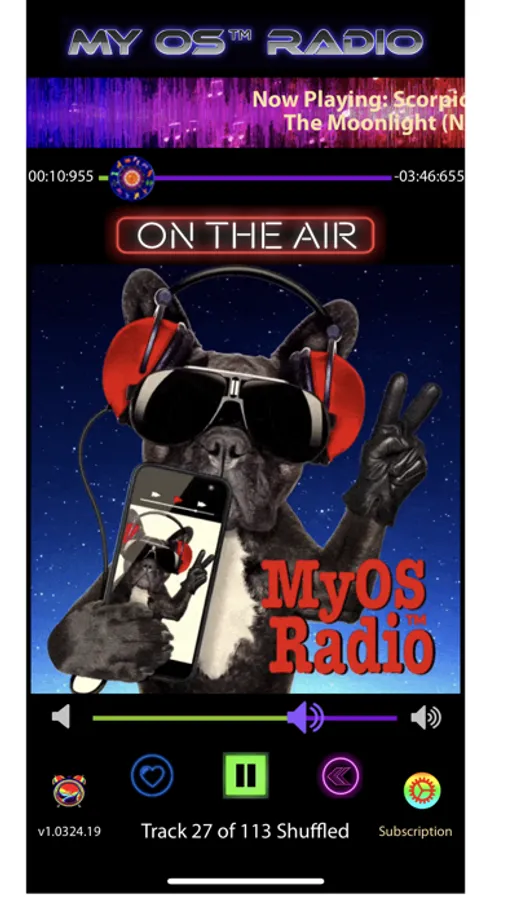 Our app was designed to sound just like a real radio station that plays music, weather and announcements. Best to play individual songs for optimum aesthetics. It will remind you, while you're listening non-stop to your favorite songs of having a transistor radio from the 60's with you! You'll have hours of your favorite shuffled songs, from MyOS Radio™!