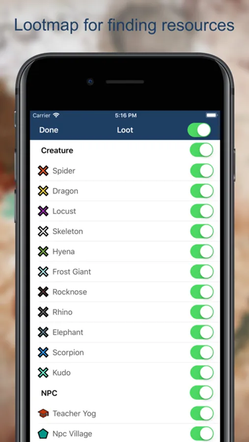 Looking for a specific resource? Ginfo comes with an extensive map of resource locations all over the map. Use the filter to find exactly what you are looking for.
