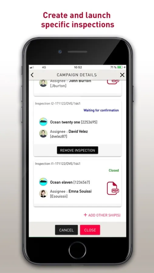 | Create targeted campaigns on your whole fleet and receive inspection results from each ship.