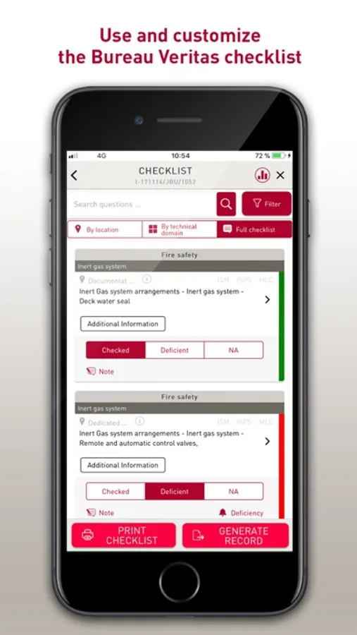 *Use the Bureau Veritas built-in, and up-to-date, checklist