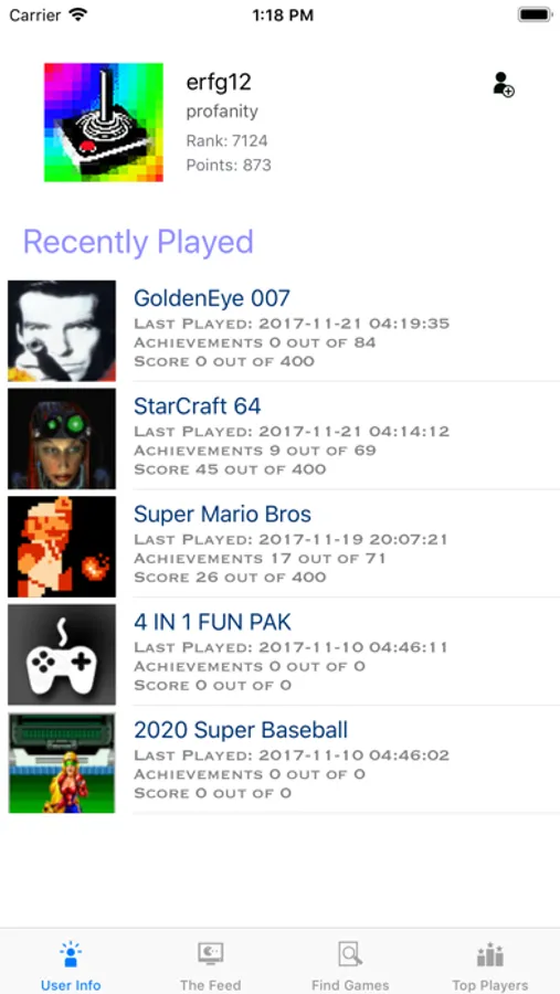 Browse your achievements or search for new games to get achievements on. Get a live feed on your achievement status.