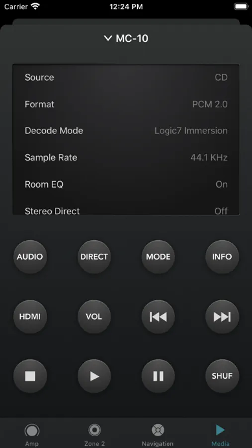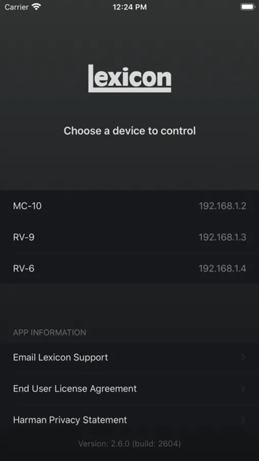 Remotely control your Lexicon device using iPhone, iPod Touch or iPad. Connect using your home network, providing feedback from your device and eliminating any line-of-sight issues present with infrared remote control.