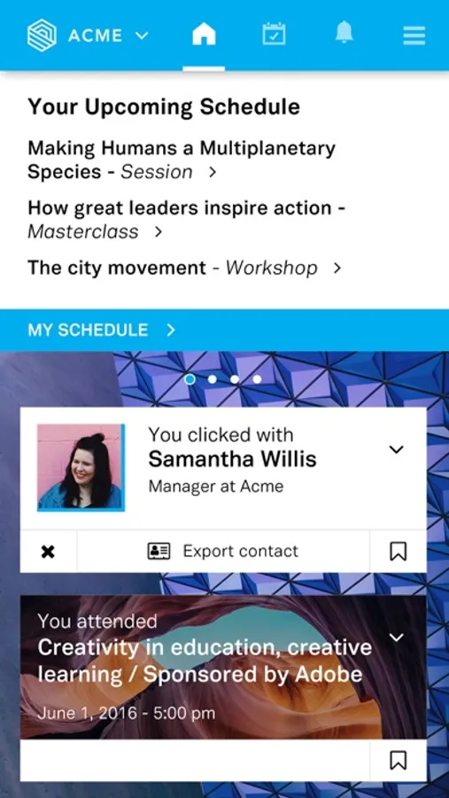 Klik helps people connect with what matters: the here and now. Event-goers can network, share, save favorites, receive helpful notifications and more, without missing a beat.