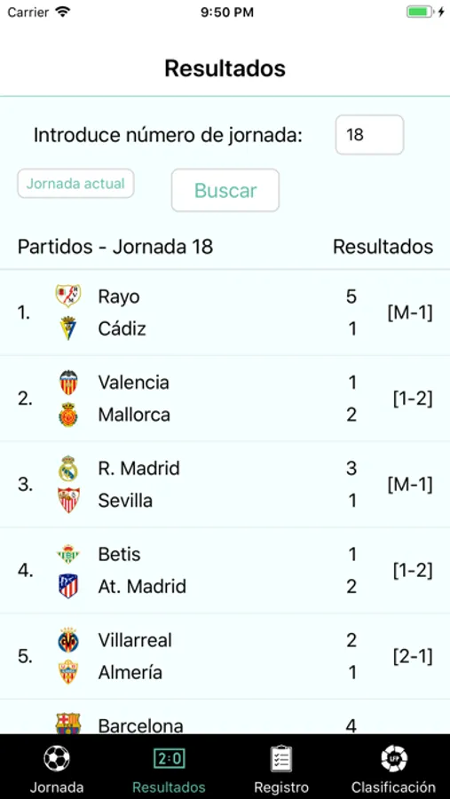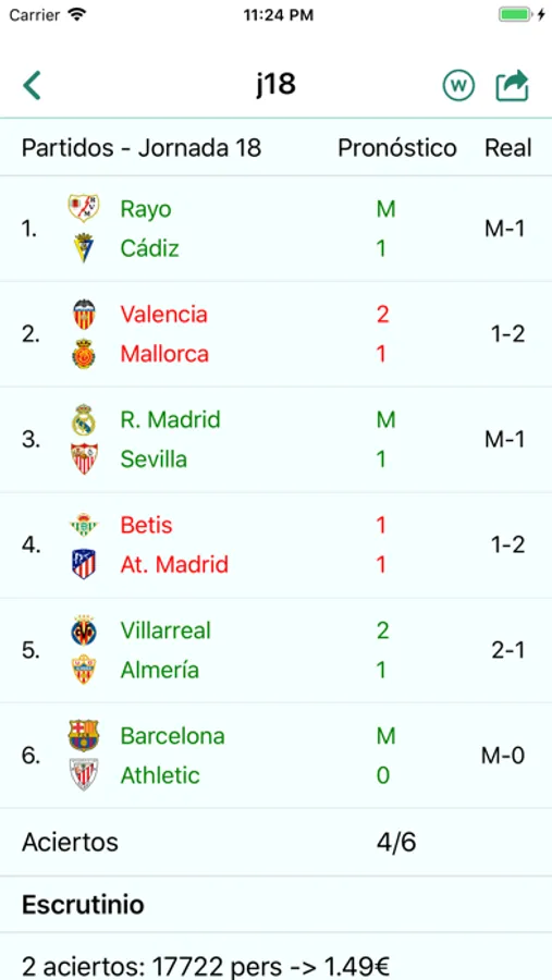 - Comprueba anteriores jornadas, junto a sus resultados, para ayudarte en la elección del quinigol actual