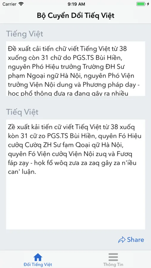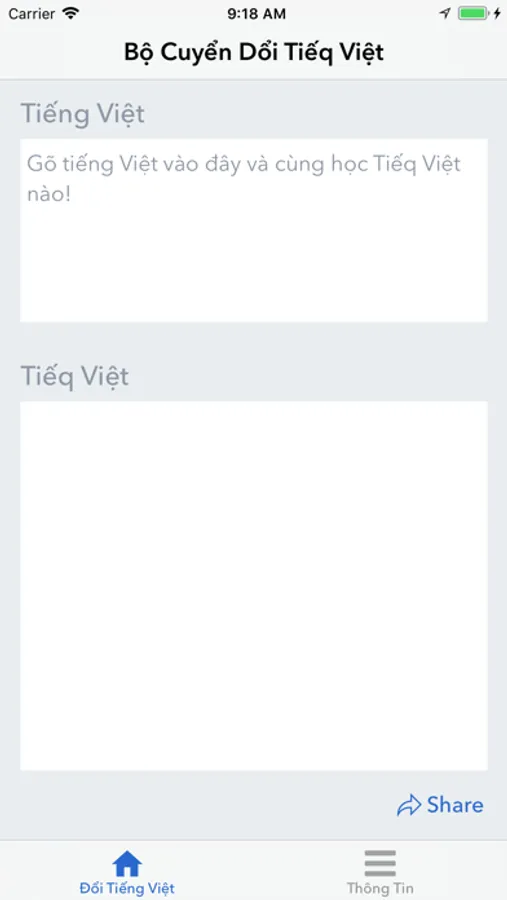 Ứng dụng chuyển đổi Tiếng Việt - Ứng dụng chuyển đổi 'Tiếng Việt' thành 'Tiếq Việt'