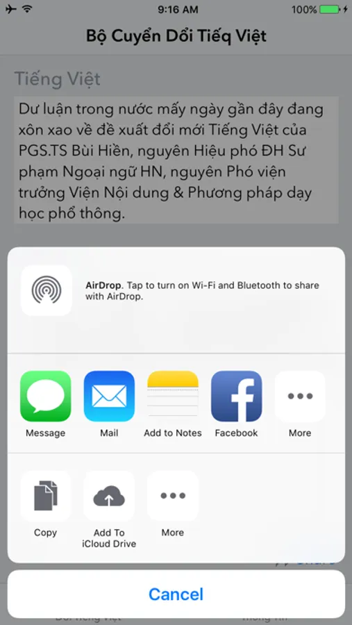 - Chia sẽ Tiếq Việt thông qua Facebook, iMessage, more