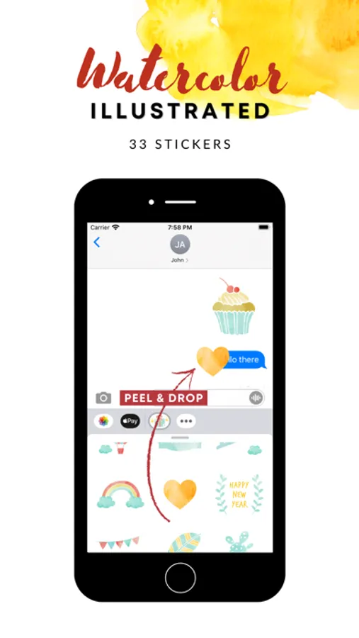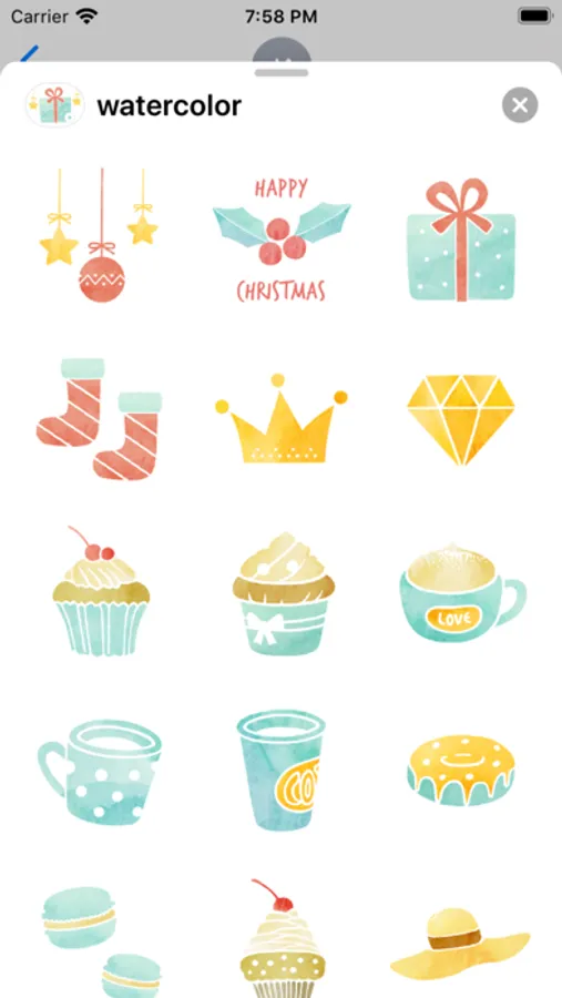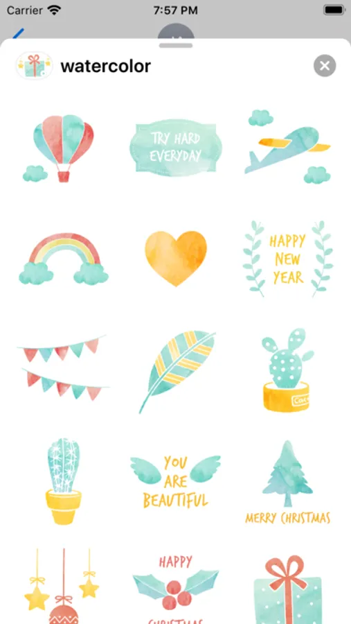 • Tap the more icon(...) to access the App Store for iMessage. Tap Edit tab and find 'watercolor' stickers to add them.