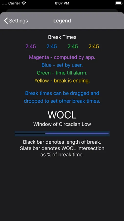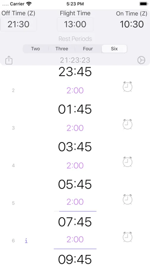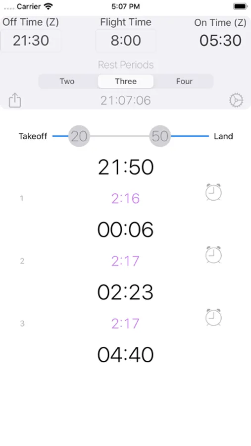 Individual, rest period duration is customizable and the app supports drag and drop to speed data entry. All times are displayed in GMT, so there's no need to change the device's timezone settings. The time zone on which to base the window of circadian low can be manually selected. Alarm notifications can be customized to alert the user that a rest period is ending. This app was designed to be referenced during the entire flight and updates the display appropriately. Get it today.