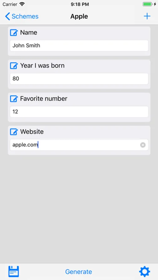 Password apps typically generate a random password and stores the password for you. This one uses values that you would normally use in your password it and generates the scrambled password.