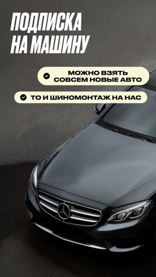 Чтобы машина была вашей надолго. Это аренда от месяца с оплатой по частям и бесплатным ТО, ШМ и ремонтом. Хотите — продлевайте до года, хотите — выкупайте авто. Есть машины разных классов без оклейки. Так что никто ни о чём не догадается. Подписку можно оплачивать и с корпоративного счёта, если надо.