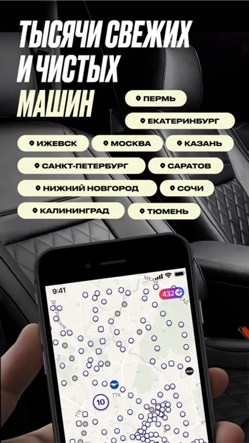 В приложении есть более 10 000 машин для быстрой аренды на минуты, часы, дни, и есть десяток моделей для долгой аренды от месяца. Авто можно взять в Москве, Петербурге, Калининграде, Казани, Екатеринбурге, Перми, Саратове и Сочи.