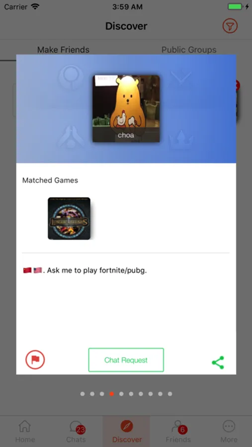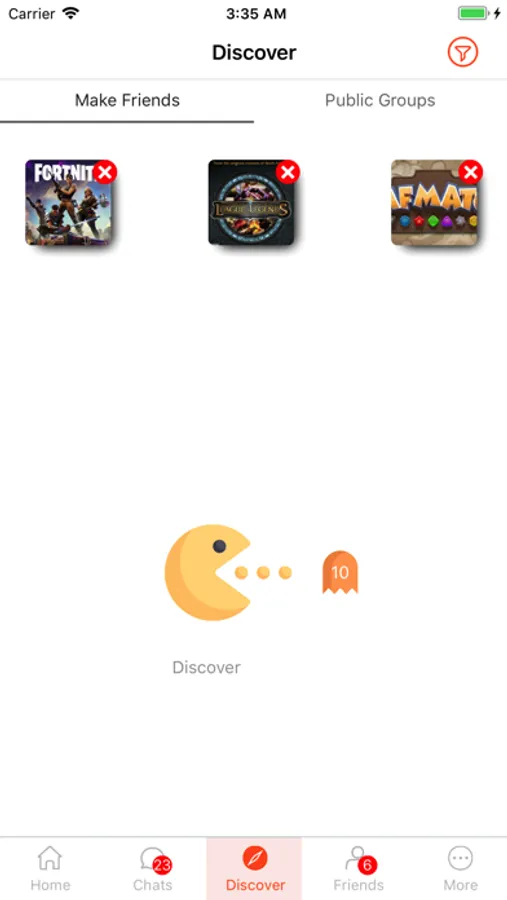 With our proprietary matching algorithm, easily discover new friends to game with based on what they play, where they're based, play style, and more! Browse gamer profiles, chat in-app with your friends, hang out in public group chats, and check on what people are currently playing!