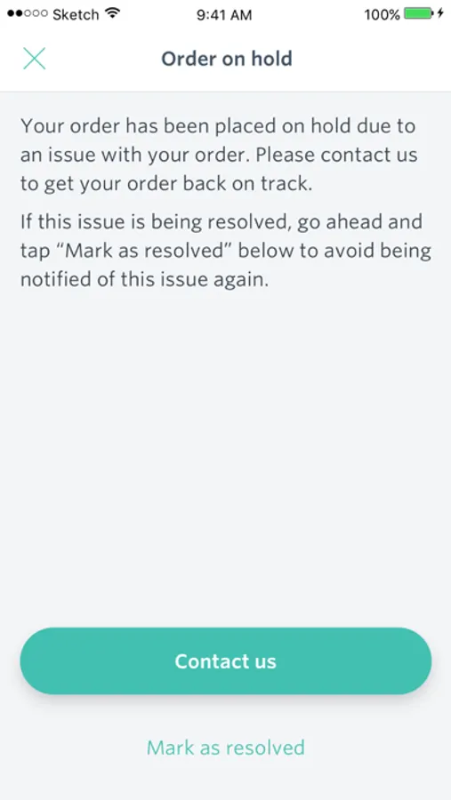 • Receive push notifications when an order is placed on hold, and swipe right to resolve by contacting our Client Services team.