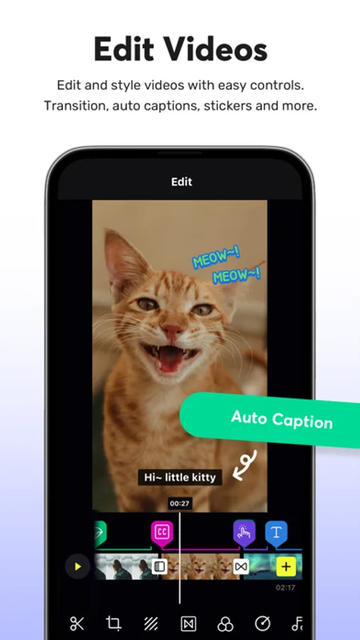 Use various effects, filters, speed options, and background music to create unique videos with ease.