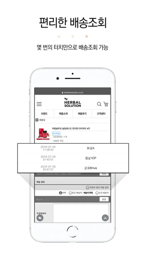 주문한 상품이 지금 어디쯤 이동하고 있는지, 단 한 번의 클릭만으로 조회하실 수 있습니다.