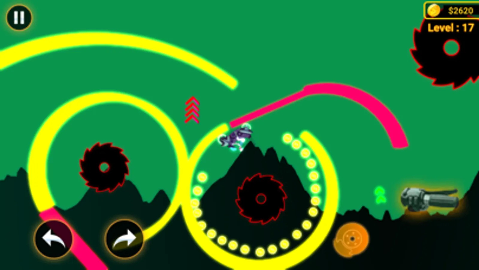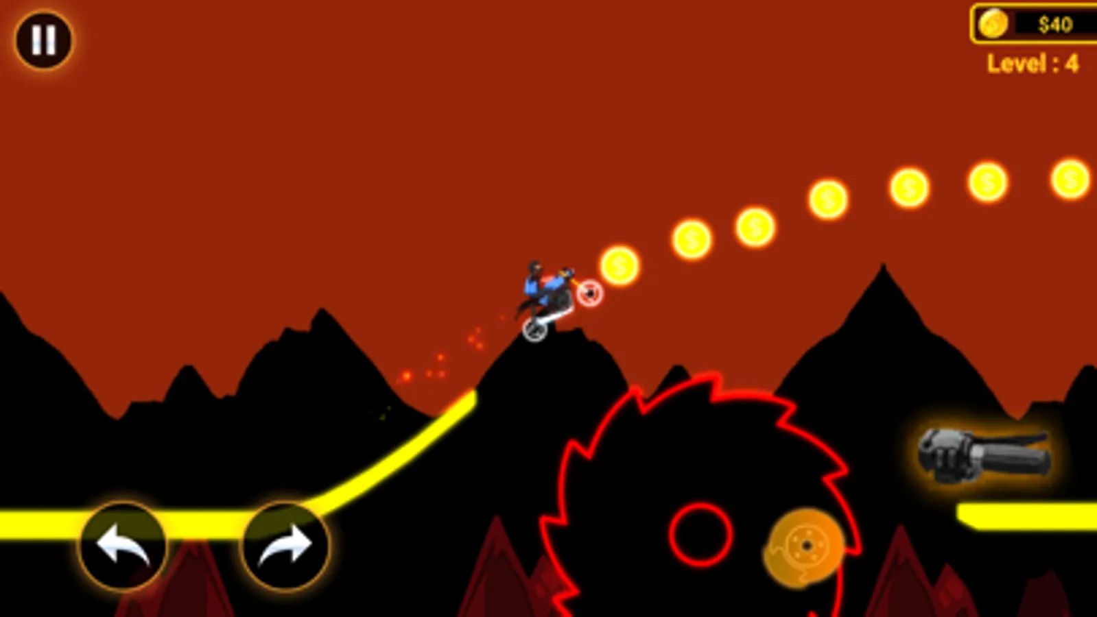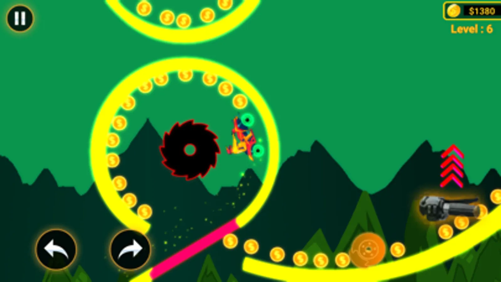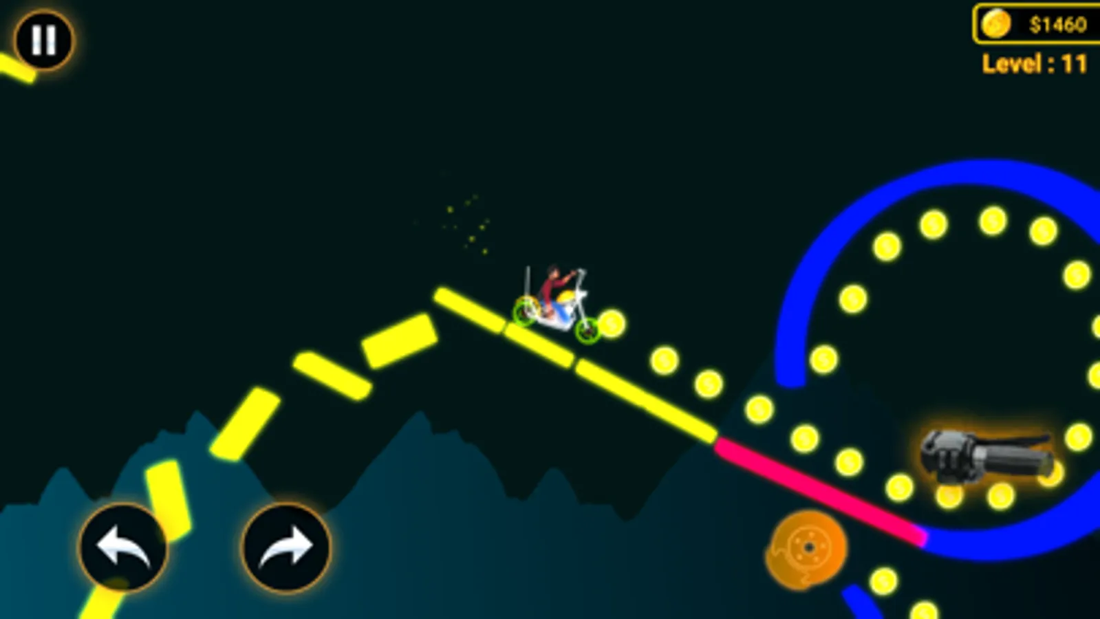 1- Futuristic Stunt Challenges: Navigate your neon bike through a series of thrilling and challenging stunt courses. With each gravity-altering level, you'll need to adapt your skills to conquer the ever-changing environments.