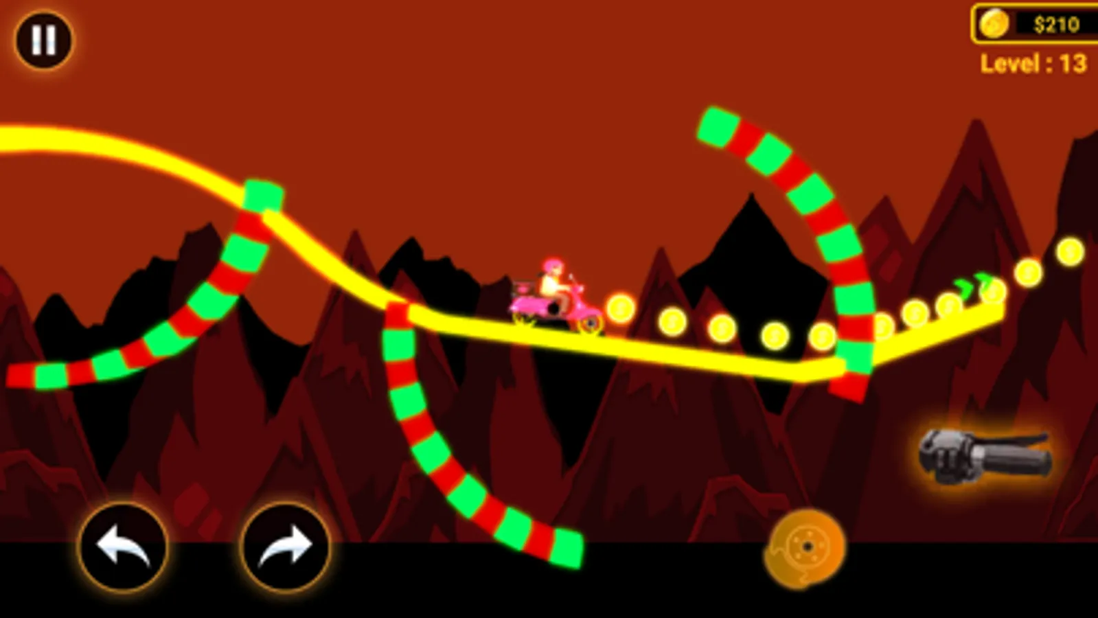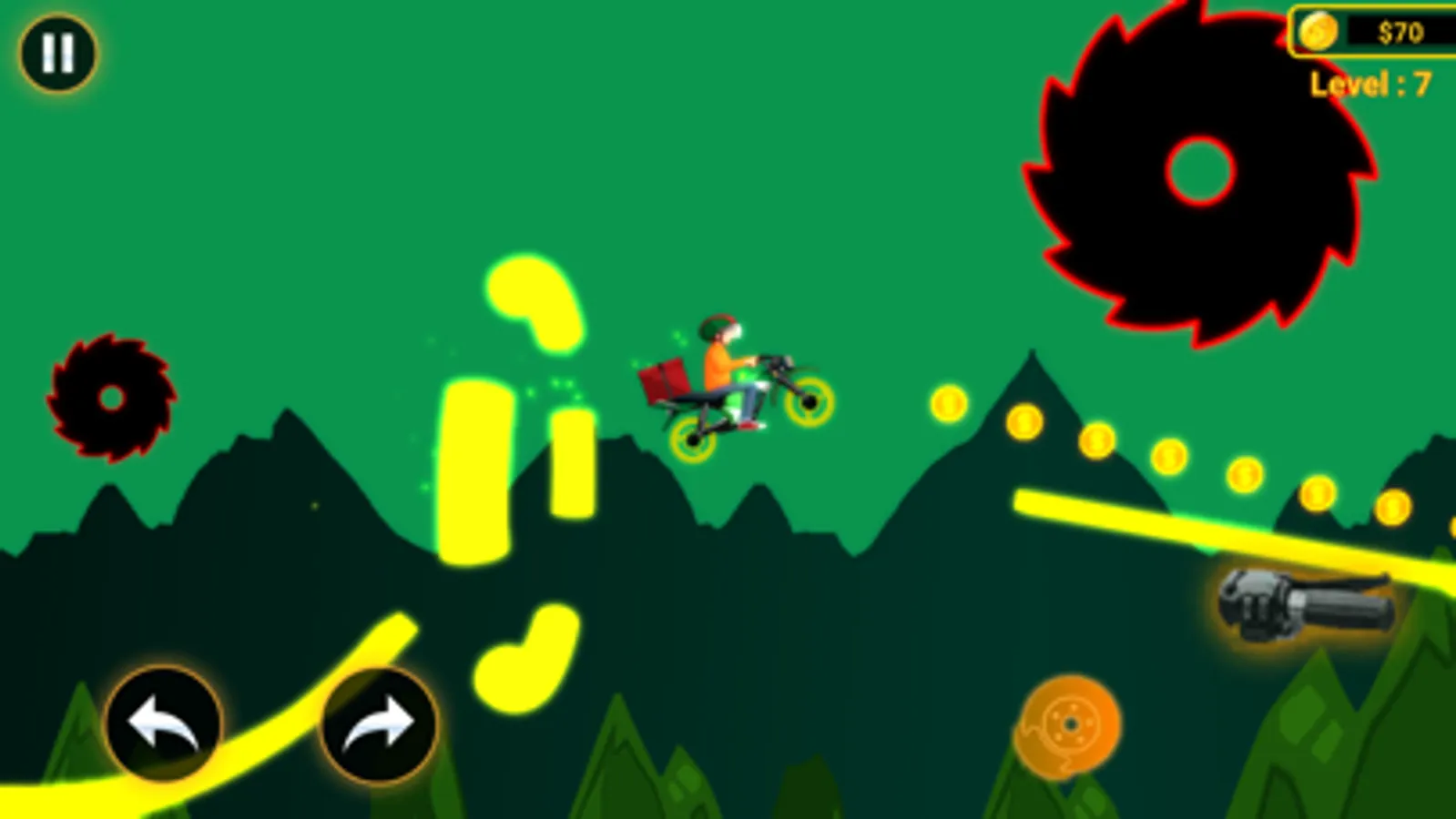 Ride your neon bike, nitro vespa, speedy scooter and Drift it, Roll it, flip it, this glowing racing game will give you the feel of being in outer nitro mission with your neon bike rider. Avoid crashes, race against time, reach your destination while keeping the nitro car safely. Race fast to complete various tasks as fast as you can and unlock next levels. Each level introduces some new tracks with difficult barriers and obstacles on the game.