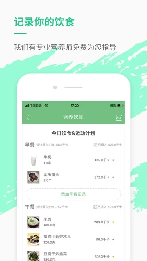 •饮食记录——记录早餐、午餐、晚餐和加餐。