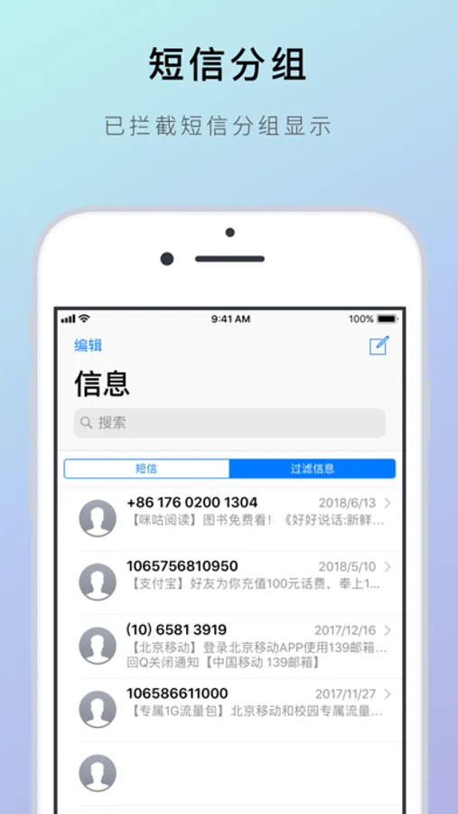 「熊猫吃短信」使用 Core ML 机器学习框架在设备端离线过滤垃圾短信,能准确的通过语义识别垃圾短信,不需要手动配置任何过滤规则,开箱即用。