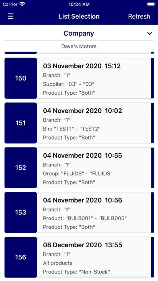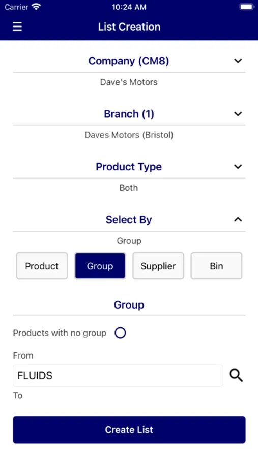 - Create stock take lists by Product, Group, Supplier and Bin ranges.