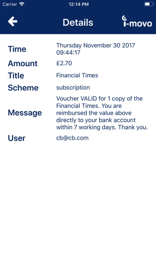 i-movo xPress allows any retail business to accept i-movo vouchers, allowing customers' vouchers to be quickly scanned using your device and the money automatically reclaimed. Voucher numbers can also be typed in manually if required.