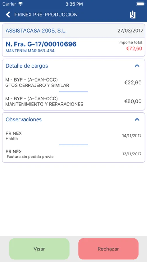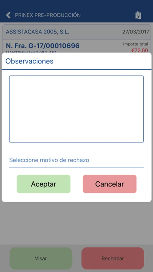 Con esta app el usuario puede realizar en movilidad los visados y firmas de las facturas recibidas cuyo circuito de aprobación y seguimiento se gestione mediante rutas del módulo Prinex Flujo de Trabajo.