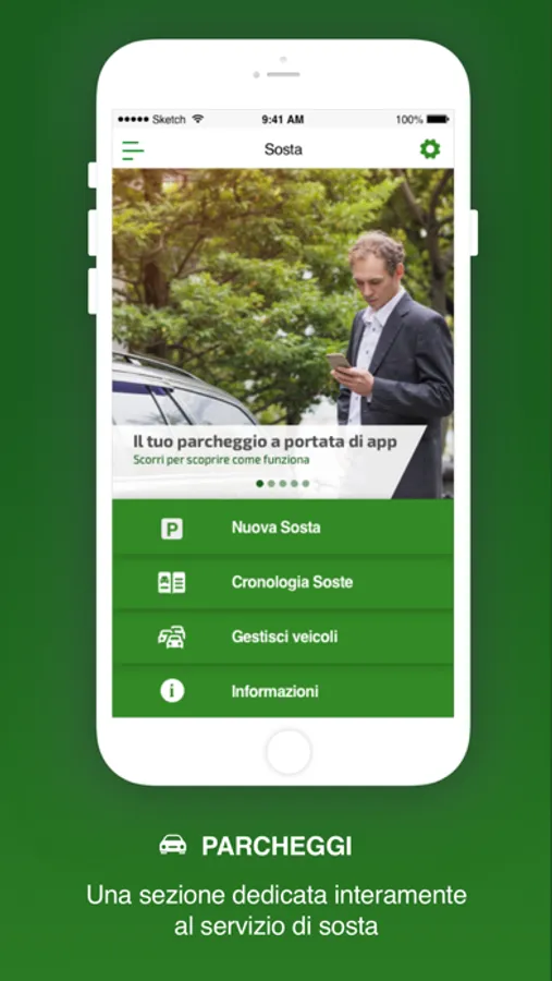 - Acquistare gli abbonamenti e attivare la sosta sulle strisce blu direttamente dall’App pagando solo i minuti effettivi di sosta.