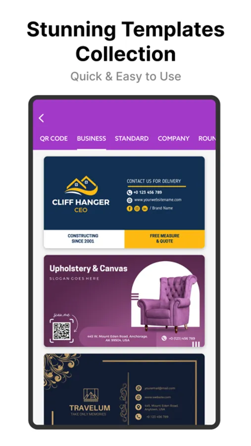 Make your own business card with our business card maker app – no design skills are needed. Get a professional business card at your fingertips. Our professional graphic designers have designed business card templates which is ready to edit.