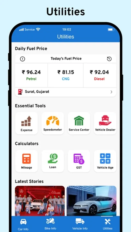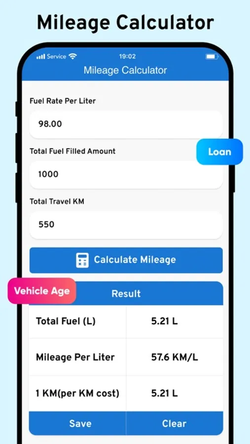 Easily calculate mileage, loan, GST, & vehicle age of Your Vehicle.
