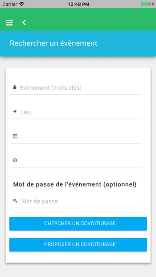 L'appli est conçue pour retrouver ou proposer facilement un covoiturage par rapport à un type d'événement, avec un moteur de recherche intégré dans chaque catégorie. Et comme vos covoitureurs vont au même événement et partagent les mêmes contraintes horaires, c'est plus facile d'organiser le retour !!