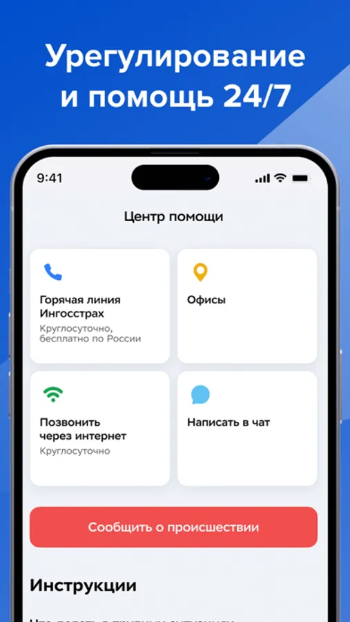 - возможность оформить происшествие на месте или из дома 24/7 без посещения офиса